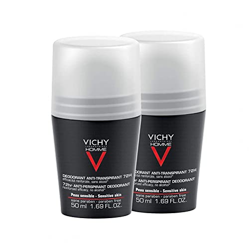 VICHY - مزيل عرق دحرجة من فيشي برائحة منعشة للرجال، سعة 100 مل، حماية لمدة 72 ساعة مناسب للبشرة الحساسة