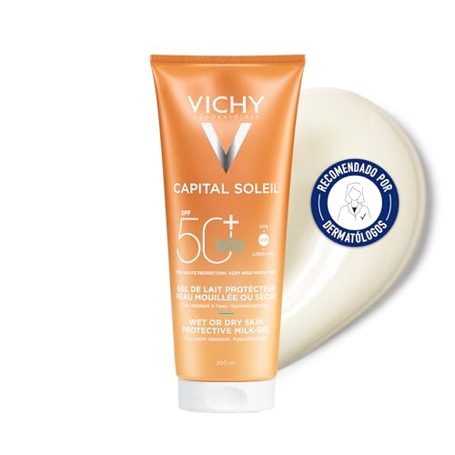 VICHY - جل حماية من الشمس 50 الترا مثالي من فيتشي بالحليب الذائب، 200 مل، لنوع البشرةحساسة