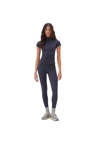 Generic - طقم رياضي نسائي من Vicino - جاكيت مع سحاب كامل واكمام قصيرة مع بنطلون بخصر مرتفع لون كحلى