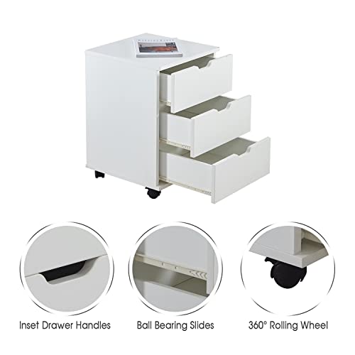 VICLLAX - خزانة ملابس متحركة بـ3 أدراج للتخزين تحت المكتب مع عجلات للمكتب المنزلي، لمسة نهائية بيضاء من فيكلاكس