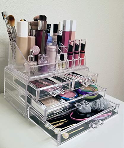 VICO MARINE - منظم مستحضرات تجميل من الأكريليك شفاف، لتنظيم مستحضرات التجميل والمجوهرات واكسسوارات الشعر بسهولة، مع وحدة تخزين جميلة مناسبة لأي سطح من فيكو مارين