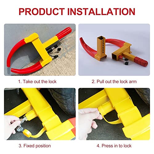 VICTOCAR - قفل امان شامل لاطارات السيارة مضاد للسرقة من فيكتوكار مناسب للمقطورات والقوارب وسيارات الدفع الرباعي والدراجات النارية وعربة الجولف - اصفر واحمر
