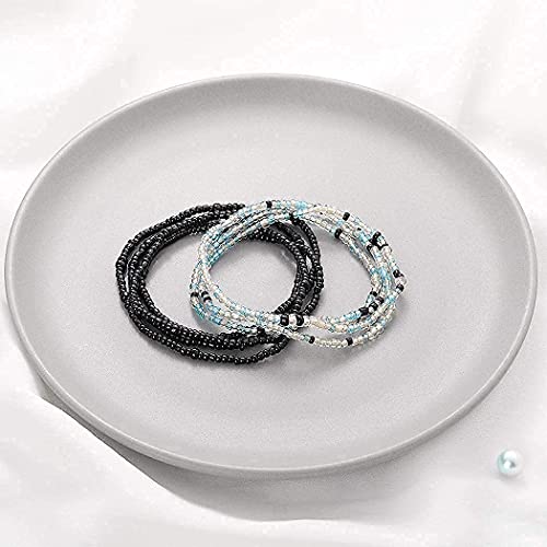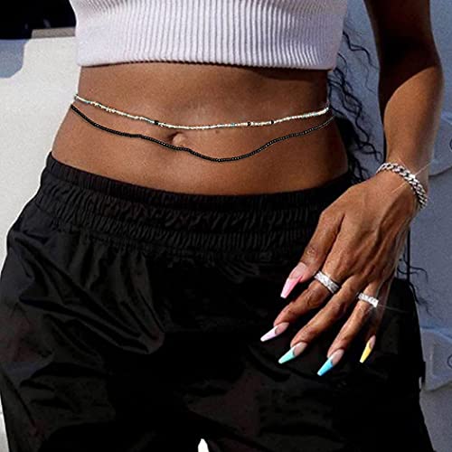 Victray - سلاسل خصر بطبقات من الخرز، سلسلة للجسم متعددة الطبقات مزينة بالخرز، مجوهرات عصرية للجسم للنساء والفتيات (عبوة من قطعتين)