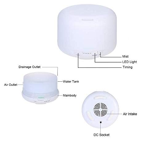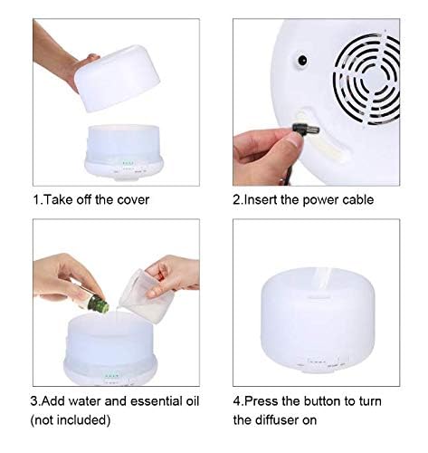VicTsing - فواحة لروائح الزيوت العطرية سعة 500 مل، مع 2 مستوى لتعديل كثافة الرذاذ و4 اعدادات للوقت، جهاز تعديل الرطوبة يعمل بالموجات فوق الصوتية باضاءة ليلية ذات 7 الوان