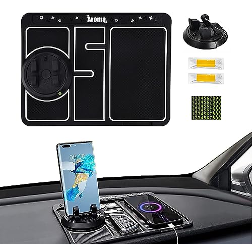 Vicyol S&D - غطاء لتابلوه السيارة وحامل الهاتف الدوار 360 درجة 4 في 1 مضيء وغير قابل للانزلاق مع قضيبين رائعين من فيسيول