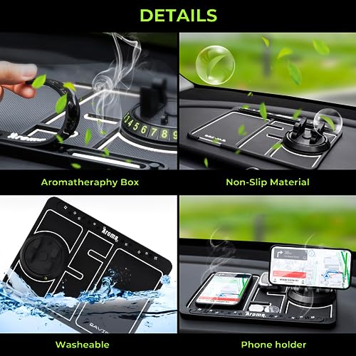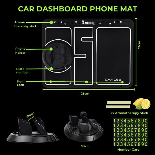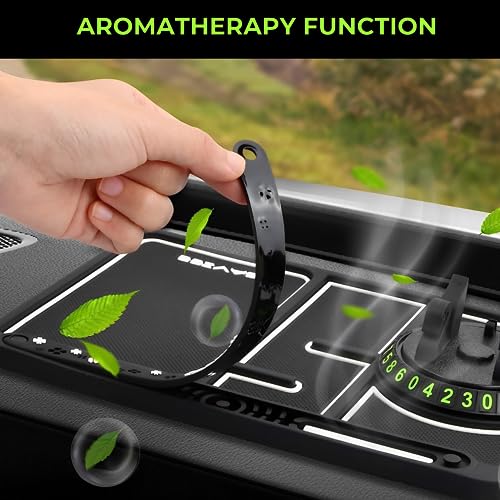 - 🚗 حامل مانع للانزلاق 4 في 1: يتضمن حامل هاتف على شكل بجعة ووسادة غير قابلة للانزلاق ولوحة أرقام وعصا للعلاج العطري برائحة الليمون عدد 2.