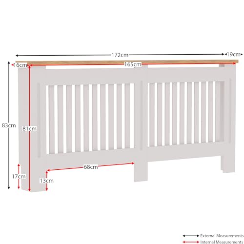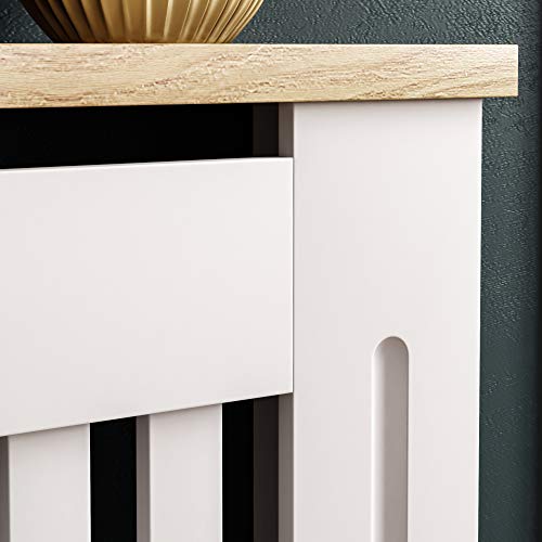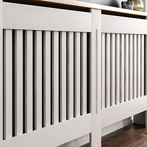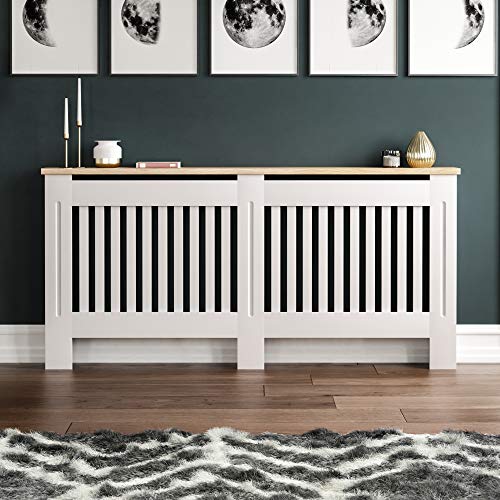 Vida Designs - غطاء رادياتير أرلينجتون، خزانة إم دي إف مطلية باللون الأبيض، مع شرائح، وشبكة، ورف علوي خشبي، كبير جدًا من فيدا ديزاينز