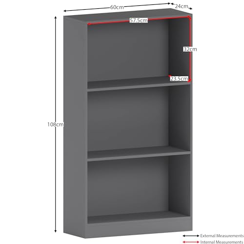 Vida Designs - وحدة رفوف خشب متوسطة بتصميم 3 مستويات كامبريدج، مصنوعة من خشب بلون رمادي، مناسبة للكتب والعرض والتخزين في المكتب أو غرفة المعيشة من فيدا ديزاينز