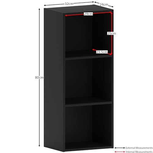 Vida Designs - مكتبة اوكسفورد خشب مكعبة الشكل مكونة من 3 طبقات مع وحدة تخزين وعرض بأرفف خشب لغرفة المعيشة والمكتب من فيدا ديزاينز، لون أسود