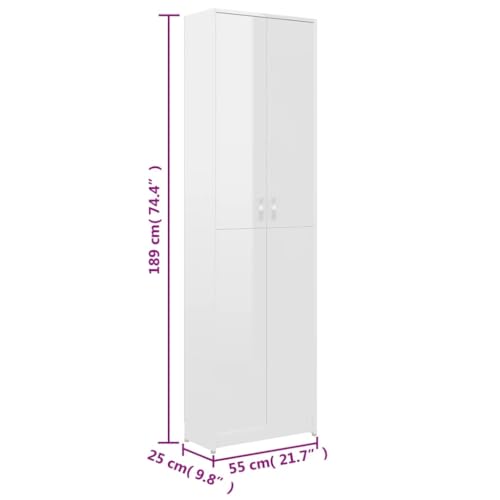 vidaXL - دولاب طويل من ألواح خشبية للممر وغرفة المعيشة النوم فيداكسل تخزين وتنظيم الملابس لون أبيض عالي اللمعان خشب مُصنع