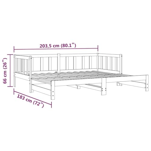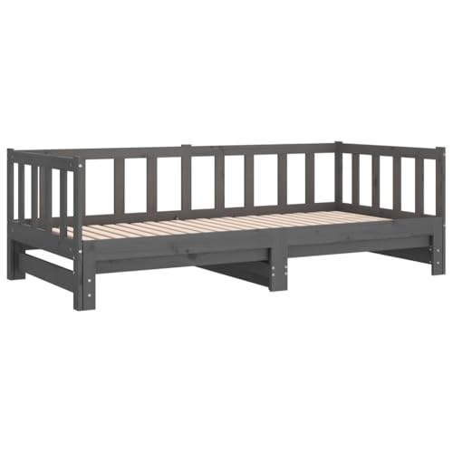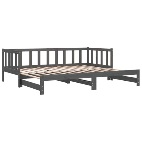 vidaXL - كنبة سرير نهاري قابلة للسحب من خشب الصنوبر الصلب لغرفة النوم وغرفة المعيشة، أثاث خشبي بإطار سرير للضيوف والنوم، كنبة تتحول إلى سرير ليلي من فيداكسل، مقاس 2 × (0.90 × 2) متر، رمادي