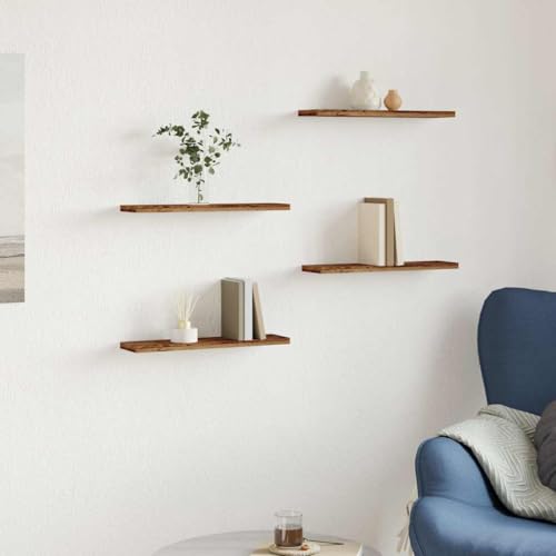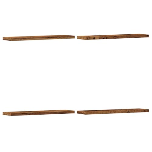 vidaXL - فيداكسل ارفف حائط - مجموعة رفوف تخزين خشبية عائمة هندسية من 4 قطع بلمسة نهائية خشبية قديمة 40 × 20 × 1.5 سم لديكور المنزل - للاستخدام في غرفة المعيشة/المكتب