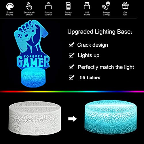 LMYUHH - مصباح ليلي من الاكريليك بتصميم ثلاثي الأبعاد بنمط ألعاب فيديو بـ16 لون متغير للأولاد والبنات ليد مع جهاز تحكم عن بعد مناسب للديكور والكومودينو لغرفة النوم وغرفة الألعاب متعدد الألوان