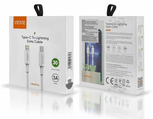 VIDVIE - كابل شحن ونقل بيانات سريع 30 وات نوع سي وiOS من فيدفي، طول 1 متر، موديل CB4013C - أبيض