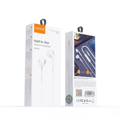 VIDVIE - فيدفي سماعة اذن بسلك 120 سم مع ميكروفون مدمج لون ابيض HS662 داخل الأذن