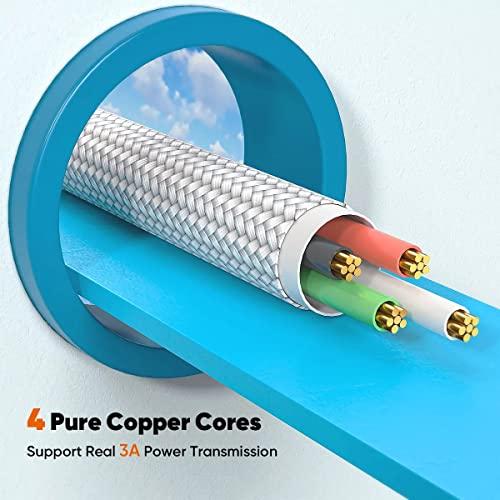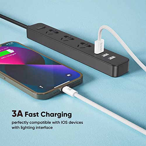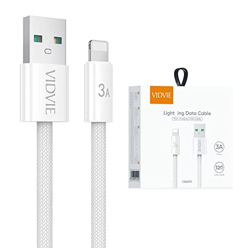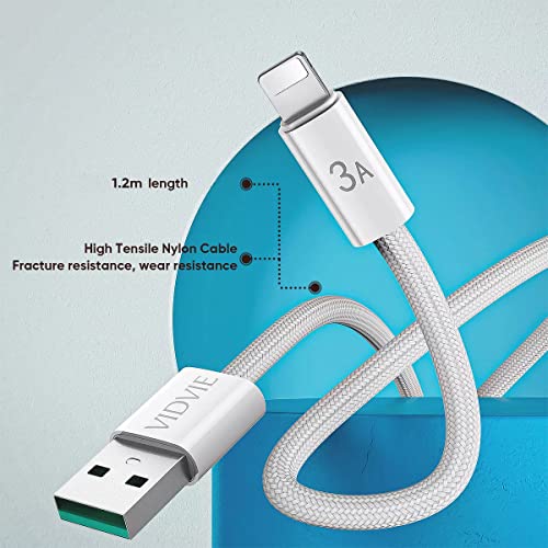 VIDVIE - فيدفي كابل بيانات لايتنينج للشحن السريع 3 امبير من النايلون المضفر لموبايل ايفون، 120 سم، مادة نايلون متينة - ابيض