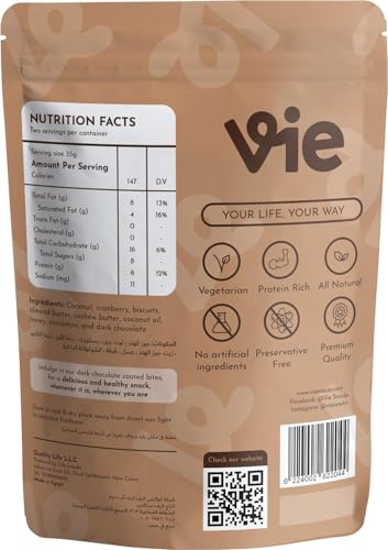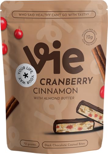 Vie - قطع شوكولاتة صغيرة مغطاة بالشوكولاتة الداكنة بنكهة التوت البري والقرفة وزبدة اللوز، 70 جرام، من في
