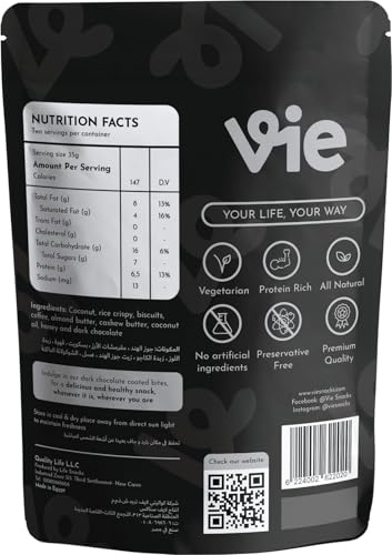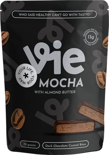 Vie - قطع شوكولاتة داكنة صغيرة موكا محشوة بزبدة اللوز من في، وزن 70 جرام