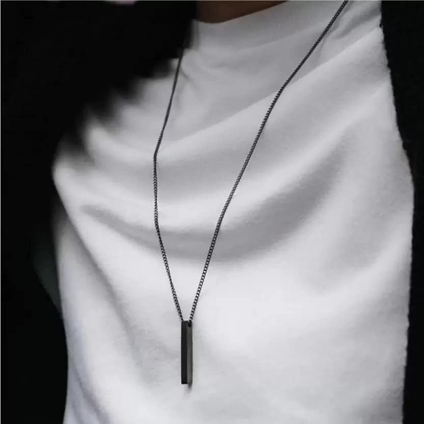 VIEN - قلادة على شكل قضيب مكعب للجنسين من فين® مع سلسلة ربط قلادة للرجال والنساء من الفضة الاسترلينية من الستانلس ستيل