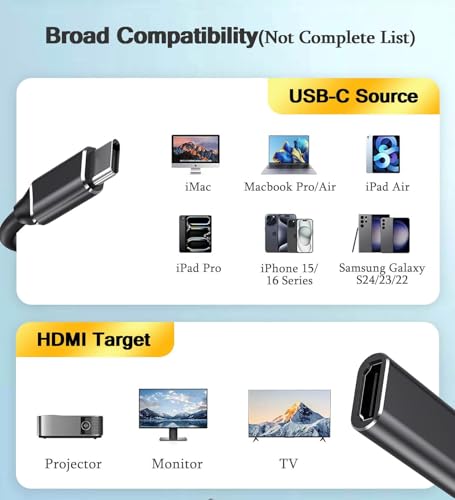 vienon - محول USB C إلى HDMI (4 كيه 60 هرتز)، محول USB نوع C إلى HDMI أنثى متوافق مع ثاندربولت 3/4] ومتوافق مع آيفون 15/15 برو/15 برو ماكس، ماك بوك برو، اير من فيينون (1 في 1)