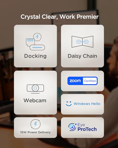- مجموعة كاملة من المرونة المريحة لكل مهمة وسير عمل. ارفع شاشتك إلى الارتفاع الأمثل، وقم بتدويرها لتكون مسطحة بالكامل، أو قم بتدويرها بزاوية 90 درجة للعرض الرأسي. ما يصل إلى ±5 درجات من إمالة الكاميرا يضمن لك وضع إطار صحيح، بغض النظر عن الطريقة التي تختارها للعمل.
