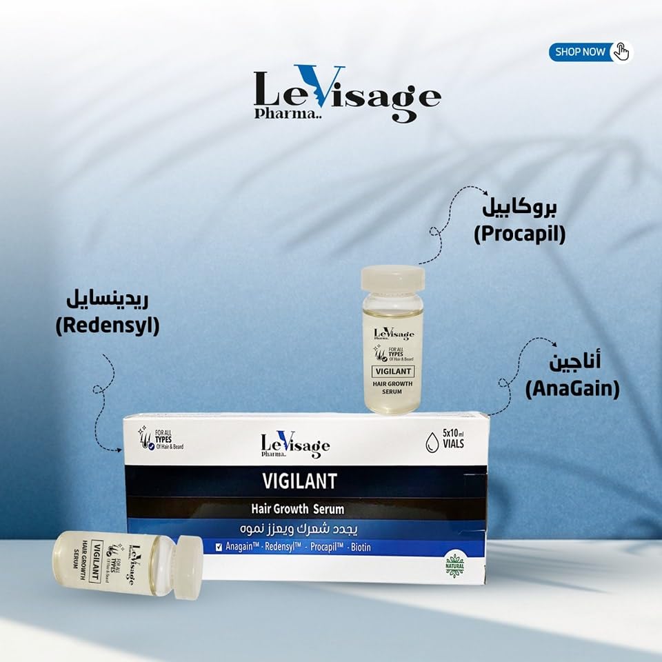 - علاج فعّال لتساقط الشعر والصلع الوراثي أمبولات Vigilant من Le Visage مصممة خصيصًا لعلاج تساقط الشعر والصلع الوراثي ، مع دعم قوي لتقوية البصيلات وتحفيز النمو.