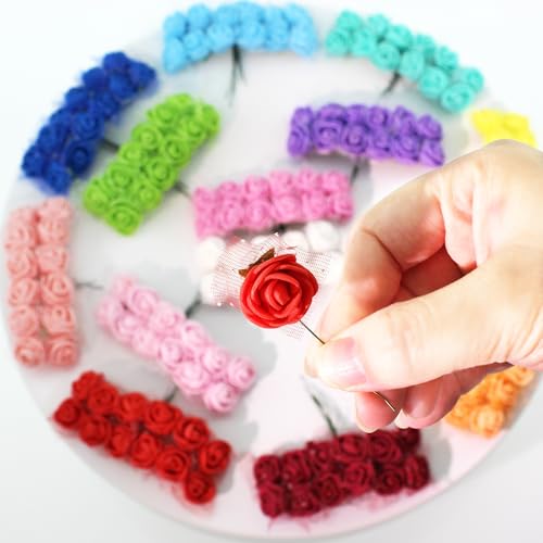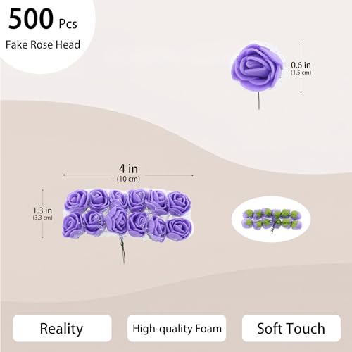 Vignor - 500 قطعة من رؤوس الزهور الاصطناعية الصغيرة 0.6 انش بالجملة 5 في 1 من فيجنور، مجموعة زهور صغيرة من الفوم الصناعي، باقة زهور صغيرة، باقة اكليل من الزهور، هدية مشبك شعر لتزيين المنزل والحرف اليدوية