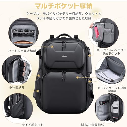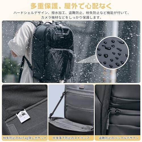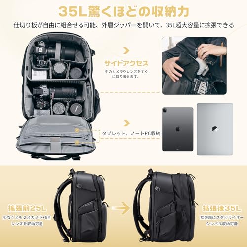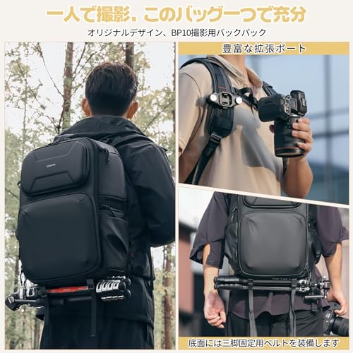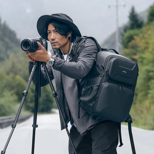 VIJIM - شنطة ظهر كاميرا من اولانزي [في اي جي ام] سعة كبيرة 7.5 جالون 25 لتر + 10 وصول جانبي غطاء صلب اس ال ار حامل ثلاثي مساحات تخزين صغيرة فواصل قابلة للتعديل ومقاومة للماء BP10، أسود