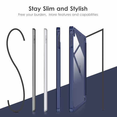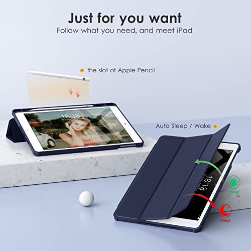 VIKESI - جراب اي باد الجيل السادس والخامس 9.7 بوصة (2018/2017)، اير 2 و1 (2014/2013) مع كوفر خلفي شفاف مضاد للصدمات [حامل قلم مدمج، خاصية النوم/ التنبيه التلقائي] - ازرق، TPU