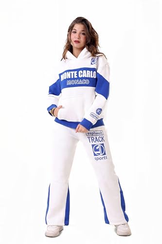 VIKIN'G.EG - ترنج رياضي بغطاء رأس تصميم عصري وانيق قطعتين هودي وبنطلون للبنات من VIKIN'G.EG (ابيض وازرق, 14-16سنة)