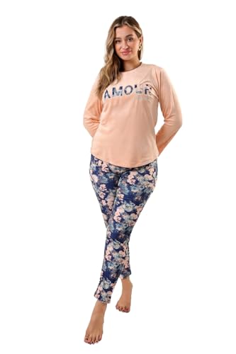 VIKIN'G.EG - بيجامة شتوية قطيفة بتصميم لطيف مع نقشة زهورللنساء من VIKIN'G.EG ، سيمون وأزرق داكن (ميديام)