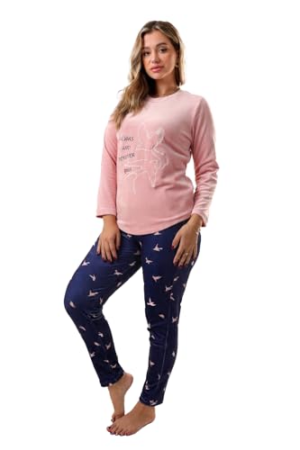 VIKIN'G.EG - بيجامة شتوية قطعتين مع نقش طائرقطن ناعم للنوم والراحة المنزلية للنساء من VIKIN'G.EG ، زهري وأزرق داكن (لارج)
