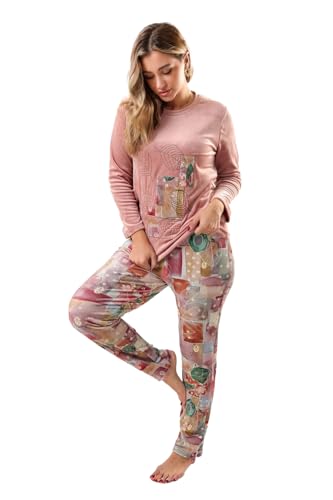 VIKIN'G.EG - بيجامة شتوية قطيفة مطبوع بنقشة زهور قطعتين بلوزة وبنطلون للنساء من VIKIN'G.EG، كاشمير (ميديام)