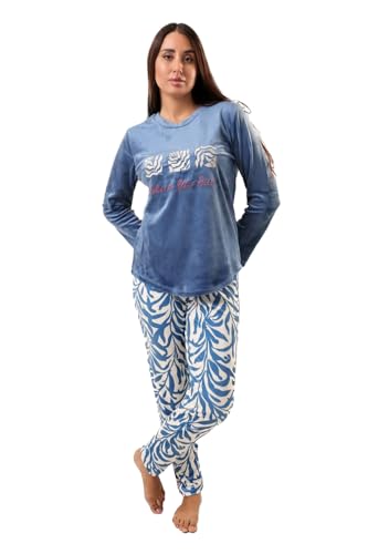 VIKIN'G.EG - بيجامة شتوية قطيفة مريحة وناعمة تصميم عصري مع نقوش نباتية للنساء من VIKIN'G.EG،أزرق وأبيض (اكس لارج)
