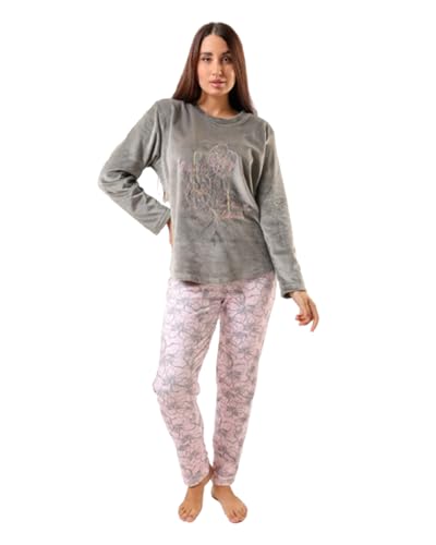 VIKIN'G.EG - بيجامة شتوية قطيفة تصميم أنيق مع نقوش زهرية للنساء من VIKIN'G.EG ، رمادي وروز (لارج)