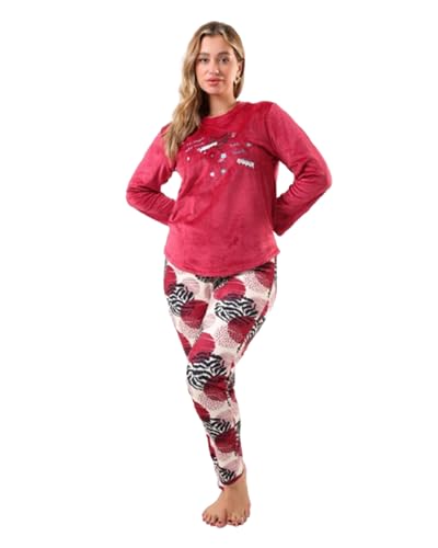 VIKIN'G.EG - بيجامة شتوية قطيفة بتصميم أنيق مع نقشة زهور للنساء من VIKIN'G.EG ،أحمر داكن وبيج (ميديام)