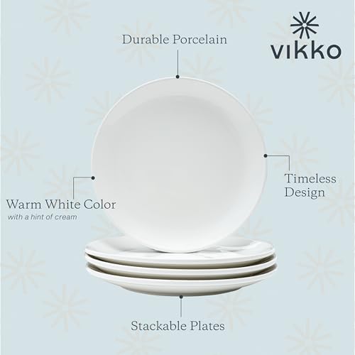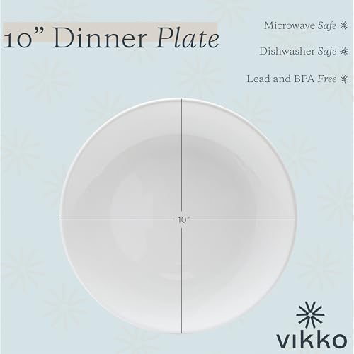 Vikko - فيكو اطباق عشاء مجموعة من 6 بيضاء بورسلين فاخر قابلة للتكديس مقاس 10 انش امنة للاستخدام في غسالة الصحون