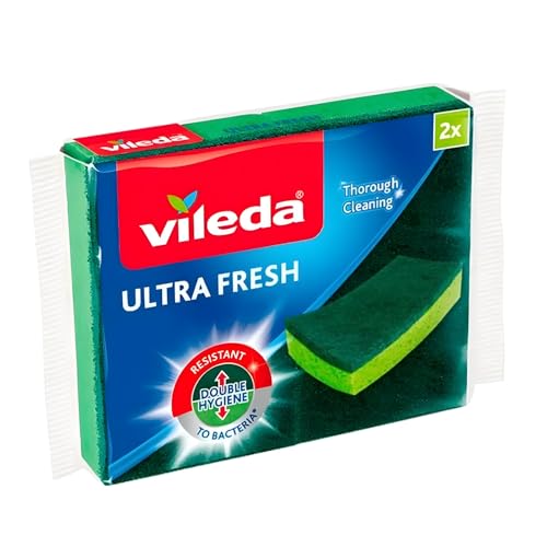 Vileda - أداة تنظيف الترا فريش متوسطة الرغوة صحية للغاية من فيليدا، سطح كاشط أخضر بقوة تنظيف ممتازة ومعالجة مضادة للبكتيريا تزيل الأوساخ بدون جهد