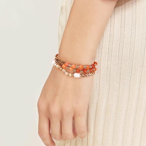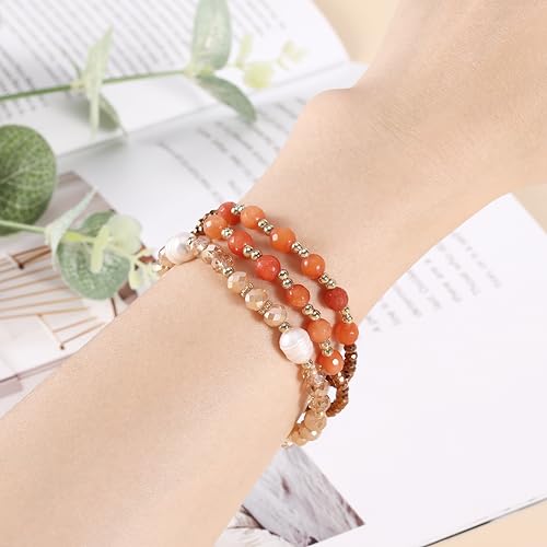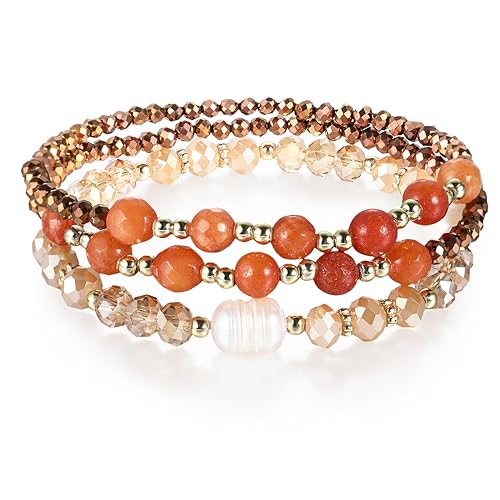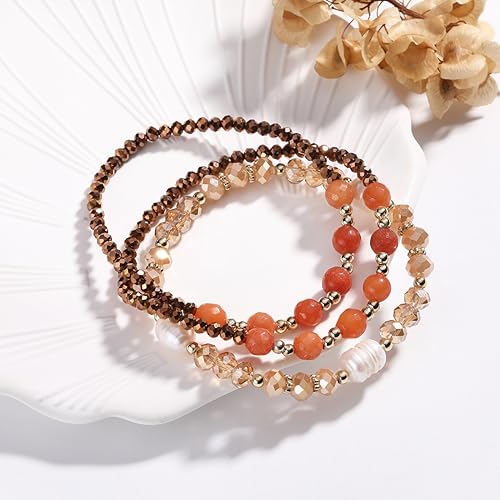 Vinabilia - اساور خرز قابلة للتكديس من 3 قطع من فينبيليا، مجموعة اساور خرز مرنة من الخرز الزجاجي اللؤلؤي بطبقات بوهيمية، مجوهرات Y2K، اساور بيان بوهيمية للنساء والفتيات المراهقات