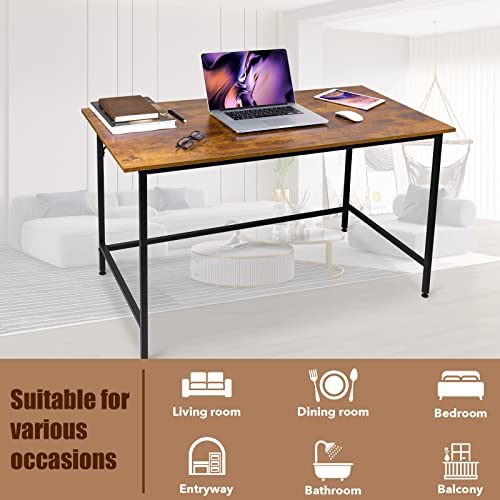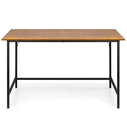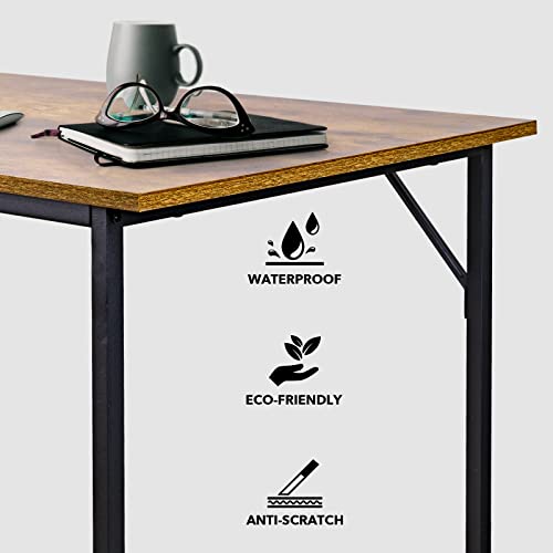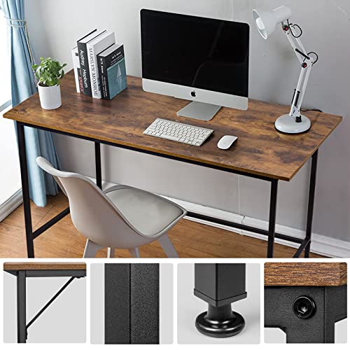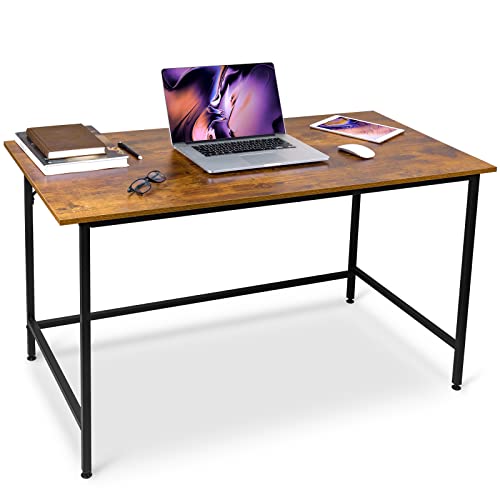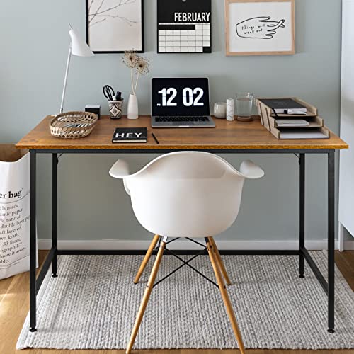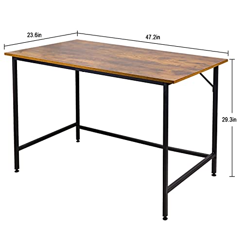 Vinext - مكتب منزلي 47 انش، طاولة دراسة للكتابة بتصميم عصري بسيط مع اطار معدني اسود، بني ريفي