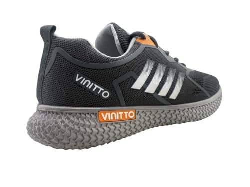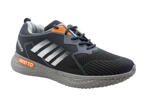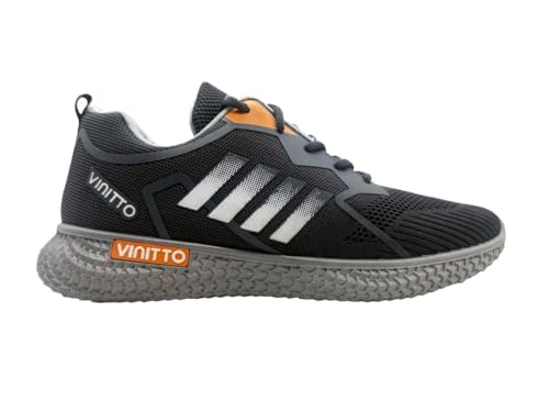 VInITTO - حذاء جري رياضي شبكي اسود بخطوط بيضاء، حذاء رياضي جيد التهوية، حذاء تدريب برقبة منخفضة، تصميم مبطن خفيف الوزن (44)