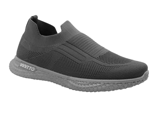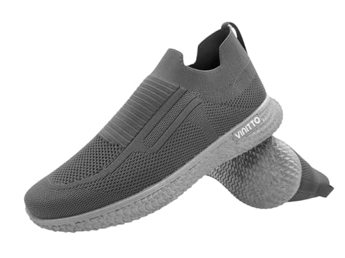 VInITTO - حذاء رياضي خفيف بسطح شبكي أسود وتصميم سهل الارتداء بنعل مطاطي مريح مناسب للمشي للرجال والنساء بلون رمادي مقاس 43 من فينيتو