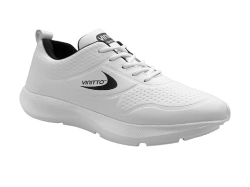 VInITTO - حذاء رياضي شبكي أسود سهل الارتداء، حذاء رياضي كاجوال خفيف الوزن بنعل مطاطي، للبالغين من الجنسين من فينيتو (أبيض وأسود، مقاس 44)