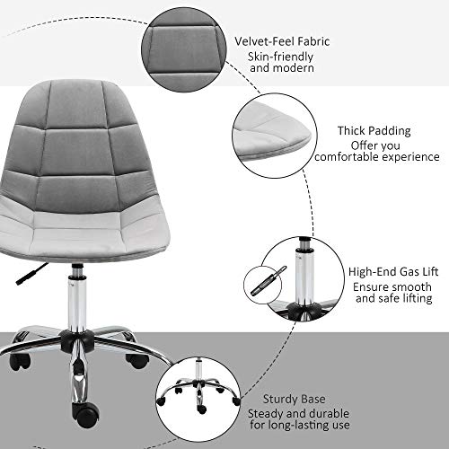 Vinsetto - فينسيتو كرسي مكتب مريح مع ارتفاع قابل للتعديل وعجلات مخملية تنفيذي بدون ذراع للمنزل والدراسة وغرفة النوم رمادي مواد مختلطة