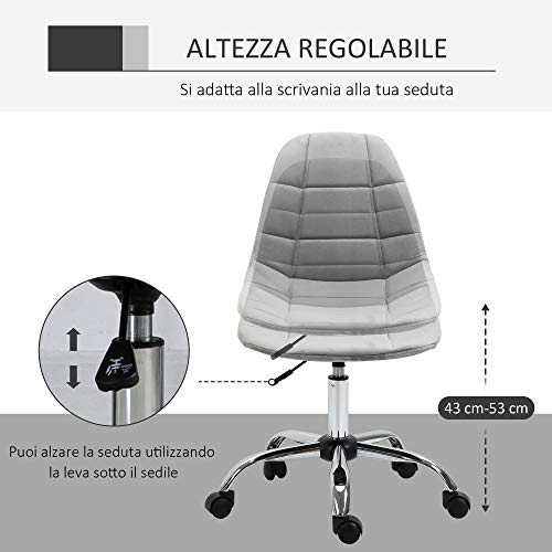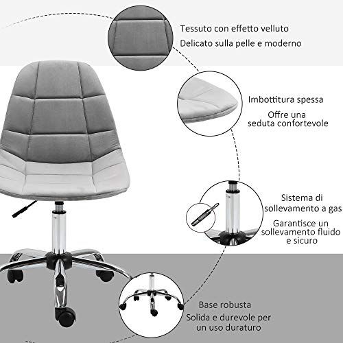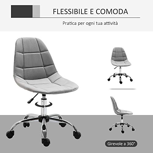 Vinsetto - كرسي دوار، تصميم مريح وقابل للتعديل بدون مساند الأذرع، رمادي، 59x59x81-91 سم من فينسيتو، قماش