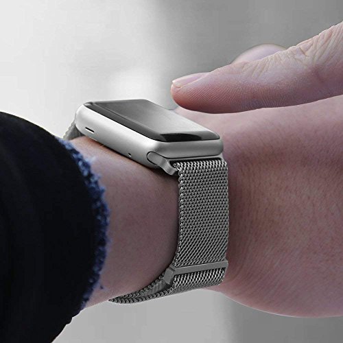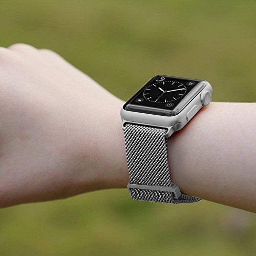 VINSOC - سوار ساعة متوافق مع ساعة ابل 38 ملم من فينسوك، حلقة ميلانو شبكية ستانلس ستيل واغلاق مغناطيسي قابل للتعديل