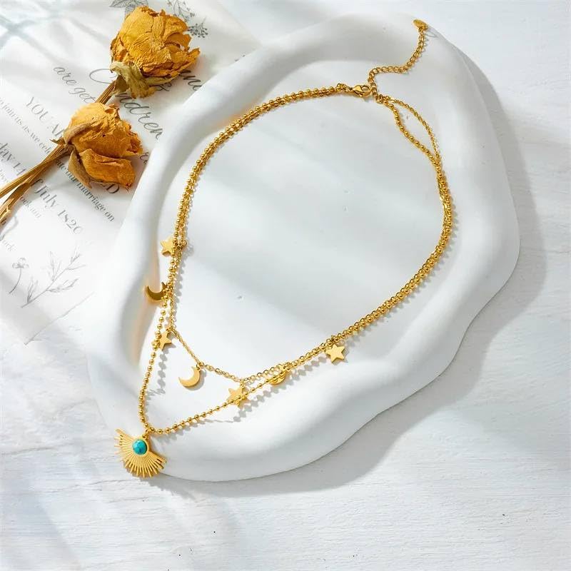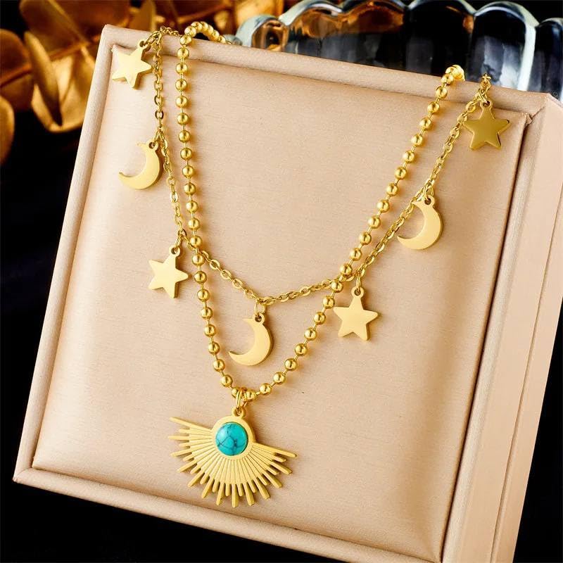 Generic - عقد واقراط بدلاية على شكل طبقات من الحجر الازرق العتيق للنساء والفتيات، مجوهرات عصرية مناسبة كهدية للعطلات