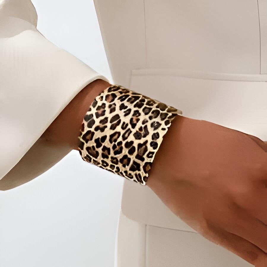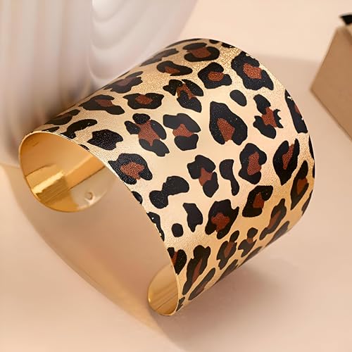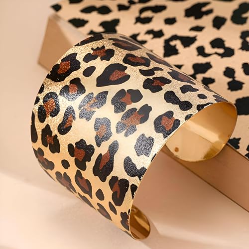 Generic - سوار بوهيمي عتيق - مجوهرات نسائية بنمط جلد الفهد مع تصميم مفتوح قابل للتعديل اكسسوار ذراع معدني عريض