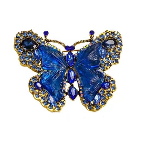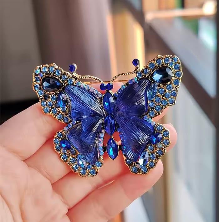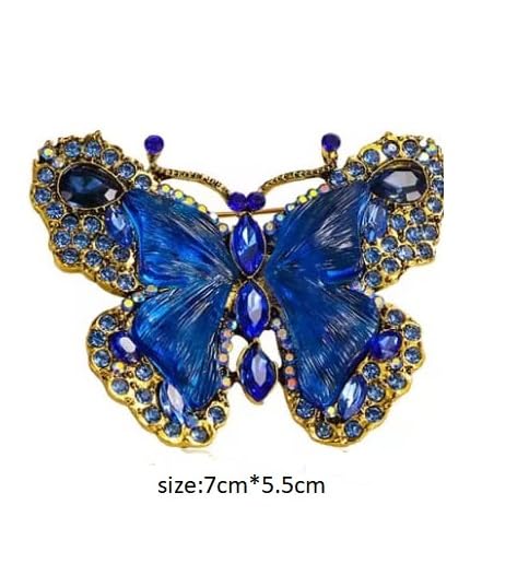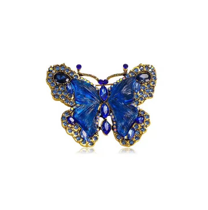 Generic - دبوس بروش فينتاج على شكل فراشة، كريستال ازرق، مجوهرات عصرية للنساء