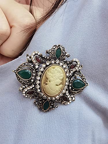 Dtja - دبوس بروش فينتاج فيكتوريان ليدي مايدن مرصع بحجر الراين الكريستالي للنساء والفتيات مطلي بالذهب المؤكسد العتيق للولائم وحفلات الزفاف واعياد الميلاد، مجوهرات هدية رائعة للام والاخت